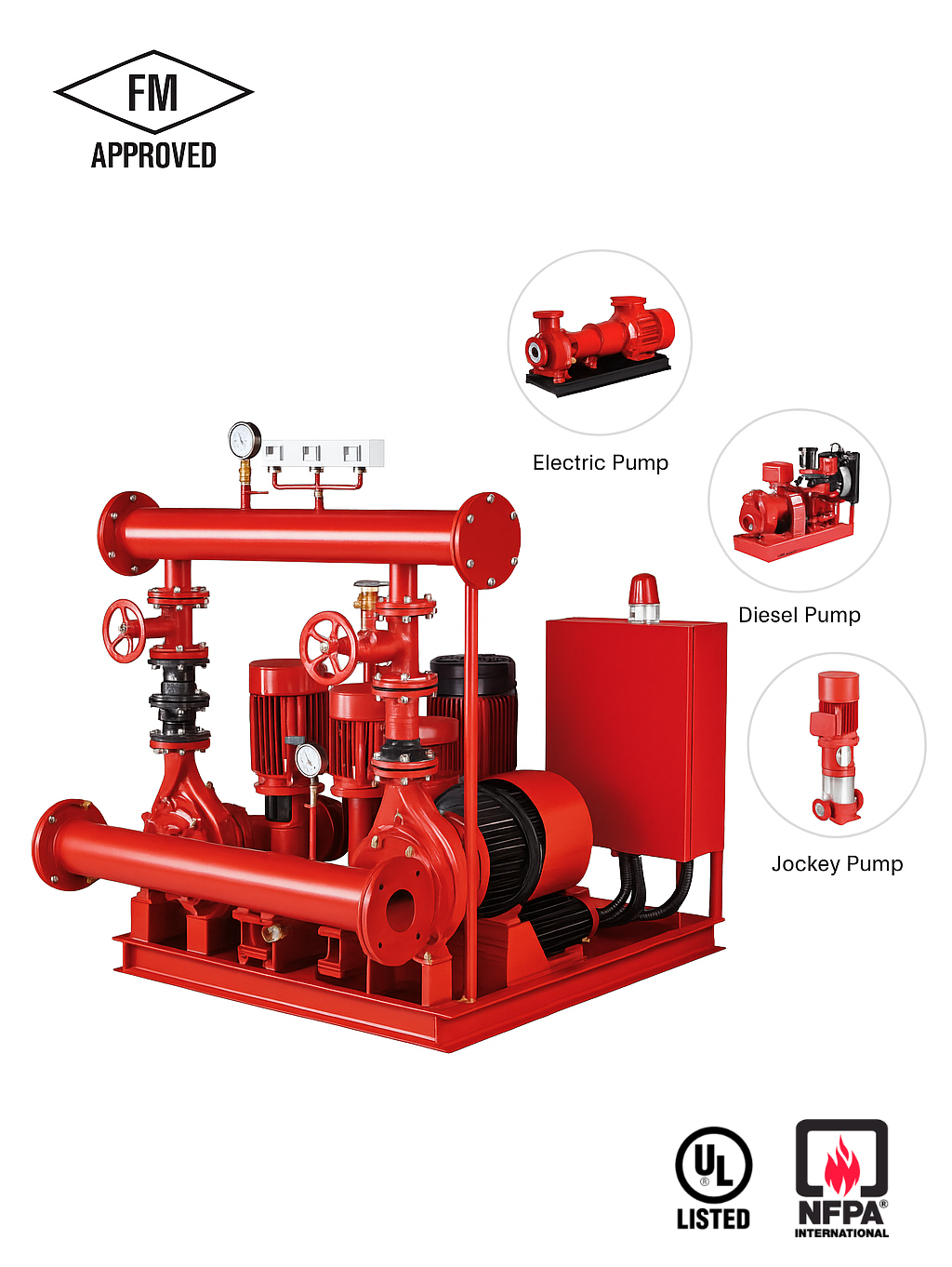 ✔ Complete Pump Packages – Electric, Diesel, and Jockey pumps with controllers.